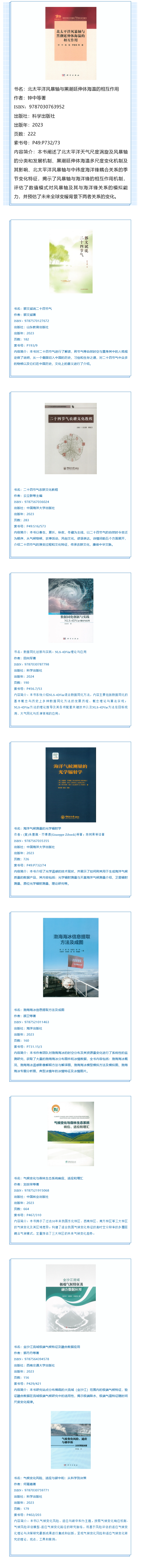 收藏国内外气象专业的各种出版物是中国气象局图书馆的重要职能与任务。本馆现有藏书近17万册,其中中文图书7万余册。中国气象局图书馆公众号将定期向读者推送我馆最新上架的中文图书信息,欢迎有兴趣的读者到馆阅读。
