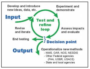 在美国, 中试平台(test bed)逐渐成为气象事业整体不可分割的部分,它通过转化创新工具和试验预测新方法,在研究和预报服务之间架起一座桥梁。