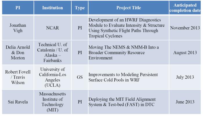 从 DTC 最近的访问者研究计划(上表)看, 除了支持的学者主要来自高校外,国际同行(英国气象局学者)也位列其中。