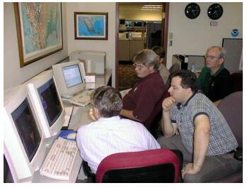 于是, 2000 年春天,“破冰”项目建立并成为以后每年的样板。在样板项目里,预报员和研究者组成一个规模不大的小组,肩并肩迎接预报的挑战,寻求解决困难的预报问题(右图),这样的机制被证明非常有效。这一机制激活了 Norman 气象界,气象研发和业务人员之间的合作就此开展起来, HWT 于是应运而生。有时候既使没有资助, 如一些“自带干粮”等研发合作也已经借助中试平台自觉开展。