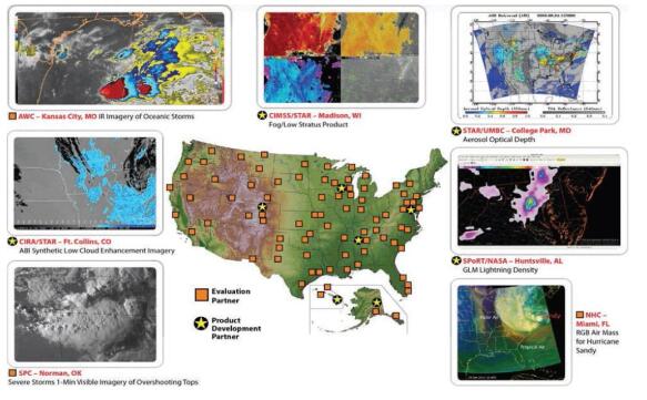 GOES-R 试验场的一项关键工作,是建立在提供新产品及技术的研究者和预报员之间双向交流的渠道,后者能够提供反馈和改进业务的思想,从而让业务系统不断前行。例如,在HWT, GOES-R项目提供全国10-15预报员的资金支持,被HWT选中的预报员,参加GOES-R能力带来的预警产品评估(这些能力包括,例如 WRF 模拟的云和水汽图像、对流发生、过辐射顶端探测和总闪量等),对其在激烈和高影响天气方面能力提升做出评价。