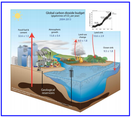 全球碳项目(Global Carbon Project)近日首次发布了年度评估报告,这份由来自12个国家和68个机构的88位学者共同完成的评估,利用了最新的碳排放探测数据,全面给出了全球碳排放源的家底。报告更加清晰地给出了最近10年人类活动对全球碳循环的干扰的全景图(大图)。报告给出1990年以来3个时段碳排放的增长率(小图)以及2013全球排放量:36.1±1.8GtCO2,较1990年增加61%,报告预计2014年排放将更多,为37.0±1.9GtCO2,较1990年更是增加65%。(来源:Global Carbon Project)