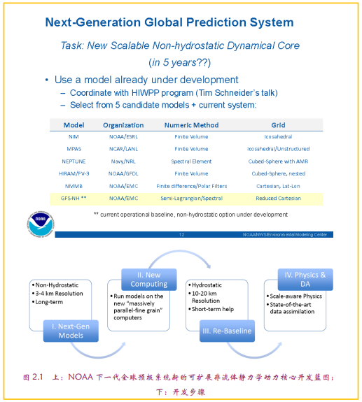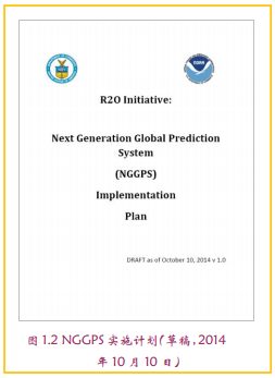 • 2014年10月:NGGPS实施计划初稿推出,提出“用5年时间,设计、开发和实施下一代全球预报系统,保持其世界水平的预报能力”。