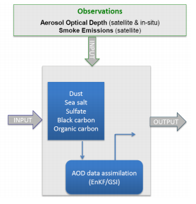 下图给出了气溶胶数据同化框架图,其中观测部分主要来自卫星数据。