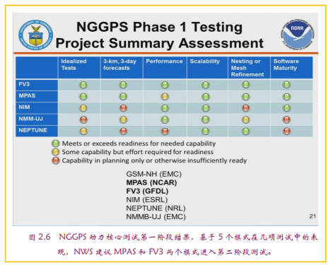 NGGPS的开发,并非是铺开一张白纸,所有蓝图重新描画。实际上,新的下一代预报系统各主要耦合模式,在美国包括业务在内的平台上不乏有影响和优秀的系统(表2.1),可供NGGPS选择。正是这样的,也只可能在美国有的模式多样性,保证了这样的优中选优程序的价值所在。NGGPS的创新团队基本上都是业务开发人员,有着丰富的经验。而且,他们对目前可用模式及未来模式的认知和期待,也使得主办机构有信心做出正确的选择。