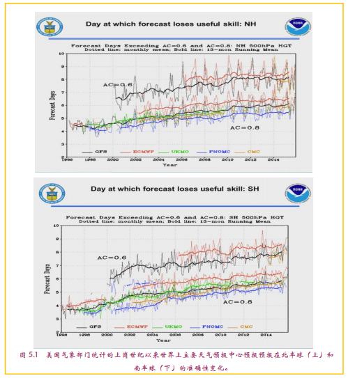 • 借助NGGPS,美国气象部门要重新夺回全球天气预报领先者的地位,成为世界第一。这点气魄实在难得,尤其是在考量了美国目前的预报与世界最佳的差距(图5.1)后尤其如此。