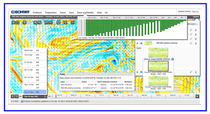 2015年欧洲中期天气预报中心(ECMWF)开展的气象可视化活动周,起到了拉近大众与气象科学距离的目的,同时也让全球气象界有机会体会可视化在促进气象预报和用户理解及利用气象产品过程中不可替代的作用。活动周包括了4次以可视化为主题的专业会议,以及可视化系统展览。图中给出主办单位高度可视化的用户界面。(来源:ECMWF)