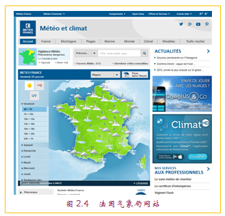 MeteoFrance天气和气候网站http://www.meteofrance.com/,见图2.4。