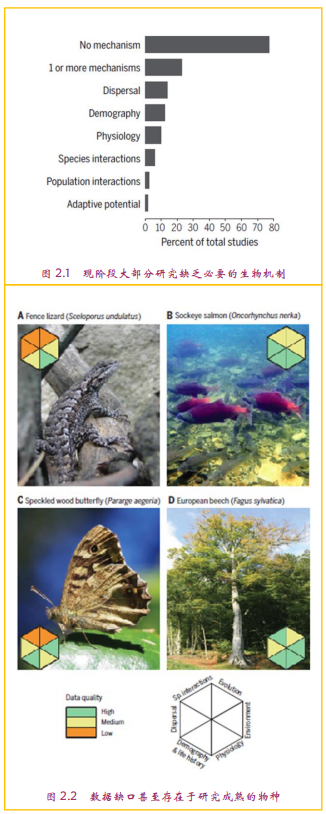 在实证和理论的基础上,这项研究确定了当前预测模型中缺失的生物学机制,包括生理学,人口学、生活史和物候学,物种间的相互作用,潜在的进化和种群分化,传播定居和种类动态以及对环境变化的响应,这六类是常见的影响响应气候变化的机制。研究者优先考虑的是可以应用于每个机制的信息,并且建议以此替代那些缺失的或难以收集的数据。研究报告显示,即使是当前研究较为成熟的物种,也经常缺乏使模型更加接近现实所需的关键信息。因此,数据的限制可能会贯穿于整个提高现实模型准确性的过程中。收集整个世界上百万物种的此类详细信息是一个巨大的挑战,因此这个研究的亮点是最大程度的提高了预测的准确性。而对于未研究的物种则通过分散数据进行更普遍的推论。具有高气候敏感性和生态影响不相称性的目标物种,可以产生对于未来生态系统变化的重要结论。适应模式方案提供了一个实现重要数据同时提高预测准确性的手段。