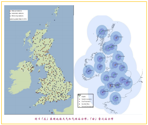 UKMO有16部业务雷达,6部多普勒雷达(图5右)。