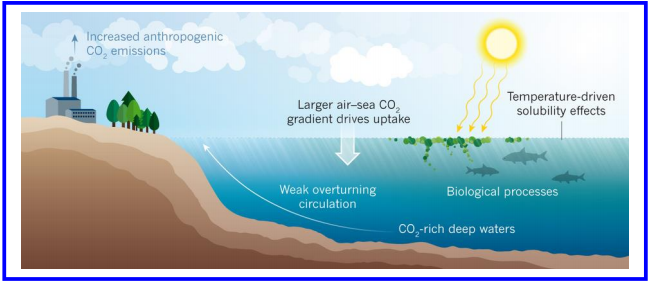 人类工业化时期使用化石燃料等向大气排放的二氧化碳有大约40%被海洋吸收,然而这种吸收是多变的:1990年代下降,但是到2000年代显著增加。什么因子控制着海洋的吸收一直困惑着科学家,美国和澳大利亚学者的一项最新研究认为,是2000年代以来,海洋上层相比1990年代较弱的翻转环流导致了海洋碳吸纳能力的提升。(来源:Nature)