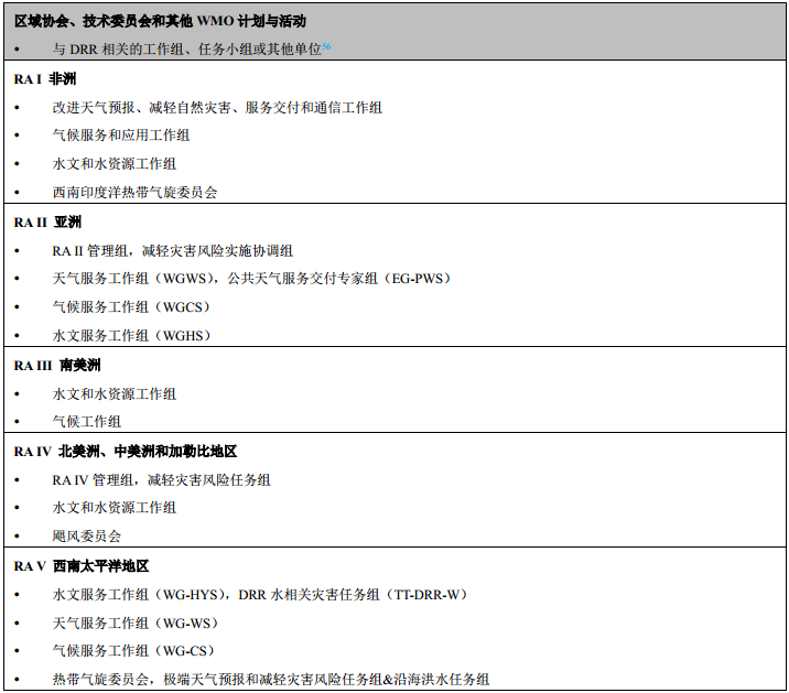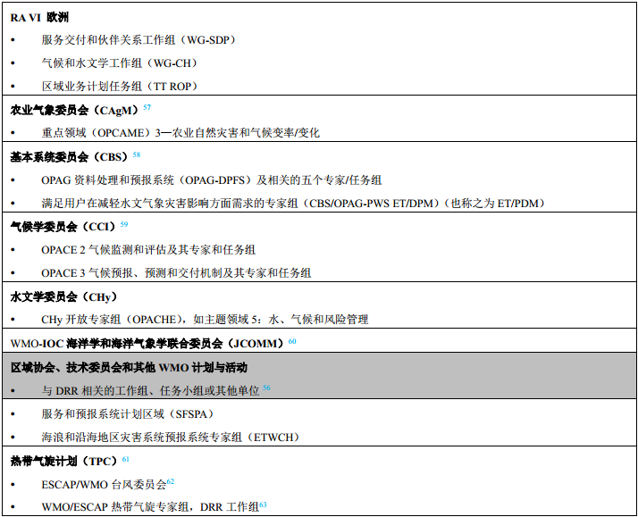 附录Ⅲ:与DRR及其战略、计划和协议相关的WMO组织机构、其它WMO计划和活动,及其工作组和任务小组