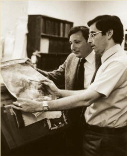 1973年,哥哥(右)在Accuweather公司里给弟弟迈尔斯(左)讲天气图的故事