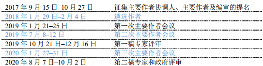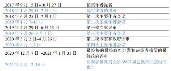 (5)为了实现此目标,IPCC第六次评估报告第一工作组报告撰写时间表如下: