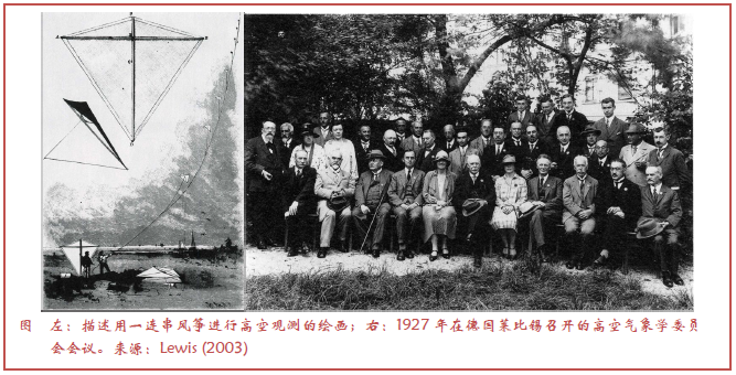 1894年,10年前在波士顿附件建立了Blue Hill观象台的Abbott Lawrence Rotch放飞了第一支装备有测量大气环境层结的记录仪器的风筝1。这一刻标志着系统高空观测的开始。Balsley et al.(1998)总结了美国天气局直到1933年还利用风筝开展的日常气象观测,后或许被飞机取代。Gregg(1922)给出了一个风筝应用的例子,他描述了依据落基山东部风筝探测站网给出的大气低层热力和动力结构。