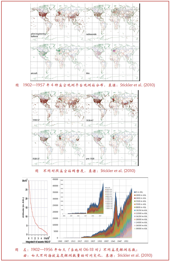 本章第3节以及Lewis(2003)的评述,综述了观测系统在20世纪早期在观测高空风中的应用。第3节给出更多的历史详情和Lewis(2003)没有涉及系统的描述。21世纪前半程全面的高空数据历史资料,已经由Stickler et al.(2010)进行了编辑,且其中的高空观测记录还在增加(其中的图3),并给出这些观测的详细历史。绘制高空风的早期进步也受益于地面数据向高空的探索,例如,利用热成风方程。这也给出了理论能够拓展观测系统的用处的例证,该特征贯穿整个观测系统的历史。