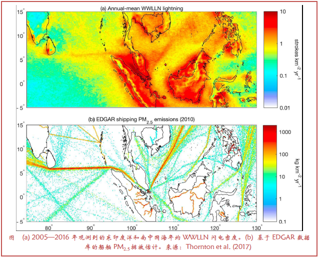 强化数据网之间的协调,能提供和促进实时数据更广泛的获取,如NRC(2009)所建议应持续进行。数据存储中心1能促进数据的有效收集、质量控制和应用领域的宽谱发布。大量气象数据与目标信息的结合,使得利用人工智能开展大数据挖掘和深度学习成为可能,从而形成新的洞察和发展智能决策支持的能力,正如Haupt et al.(2018c, 第5节)所指出的。大气观测系统数据与其他目的收集的数据之间的协同还可能得到意外受益。例如,Thornton et al.(2017)将来自WWLLN数据库的闪电频率与海洋船只排放进行了比较,发现在东印度洋和南中国海闪电频率与排放之间存在显著相关。海洋船只排放清单(来自全球大气研究排放数据库,EDGAR)因为船载用于避免碰撞的自动确定系统(Automatic Identification System,AIS)的应用才成为可能。因此,一个为避免海上碰撞而设计的系统,当与闪电大气观测系统耦合时,提供了海上闪电的重要线索。
