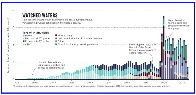 近一个世纪以来,人类对海洋水体的观测,无论是视角还是精细化程度,都在大幅度提升,这些观测对了解地球水圈及其与其他圈层的作用,起到至关重要作用。(