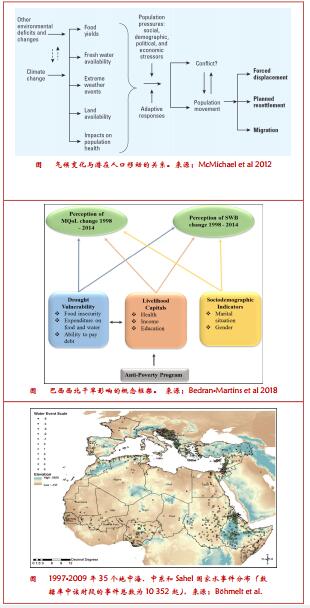 实证研究考察了生计、脆弱性和健康的交叉。例如,越来越多的证据表明,气候压力不仅可以抵消生活质量的提高,还可以减缓未来的发展(Tol 2008; World Bank 2010)。 Few and Tran(2010) 研究了越南生计、气候变率和变化之间的关系,指出健康风险与源于贫困的脆弱性之间存在密切关系,他们论证,要解决贫困人群的健康问题,可能更应把重点放在生计和资产保护上,而不是传统的预防保健行动。除了常见的健康风险评估之外, Driscoll et al. (2016)发现阿拉斯加传统社区在不合时令的环境条件中受伤更多。研究也发现气候在非洲对两个健康因素产生负面影响:儿童的学习能力和出生体重(Grace et al.2015)。