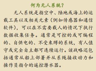 加强与学术机构在无人系统方面的合作将包括与 NOAA 的合作研究所合作,并进一步利用美国国家海洋合作计划( NOPP),以使联邦机构能够利用资源对优先重点进行投资,因这些优先重点是跨机构的任务或是任何一个机构无法独立支持的大型任务。如《海洋技术助力商业参与法》中所述, NOAA 也可以选择与学术合作伙伴合作开展业务或研究活动,以共享最佳实践、开展联合培训或促进技术的商业化。