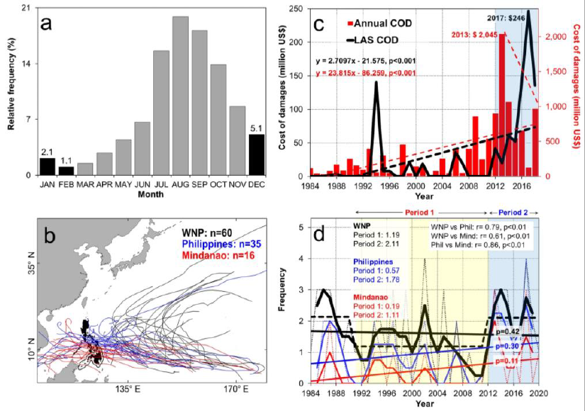 “圣诞台风”指西北太平洋热带气旋(TC)在其生成淡季的活动。2012—2020年,圣诞节期间西北太平洋的台风次数增加了70%,在此期间菲律宾的台风次数增加了210%。研究表明:近年来圣诞台风的增多主要与太平洋年代际震荡向正位相的转移有关,这导致了TC发展的大尺度环境发生了有利的变化,如相对涡度升高、低空西风带异常、中部太平洋海面温度升高和副热带高压扩大。研究还发现,热带辐合带向极地转移,西伯利亚高压的恢复,可能是导致这种现象增加的原因。与比较活跃的TC季节相比,在较不活跃的TC季节存在较大的研究空白。该研究的目标是填补这一知识空白,以更好地降低TC风险。(来源:Scientific Reports)