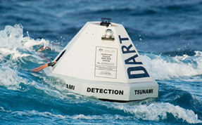 图2 DART浮标探测海啸波,并将实时海平面测量数据传回海啸预警中心