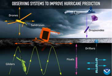 图4 由水下、水面和空中无人机与飞机相结合的观测系统在2022年飓风季执行观测任务