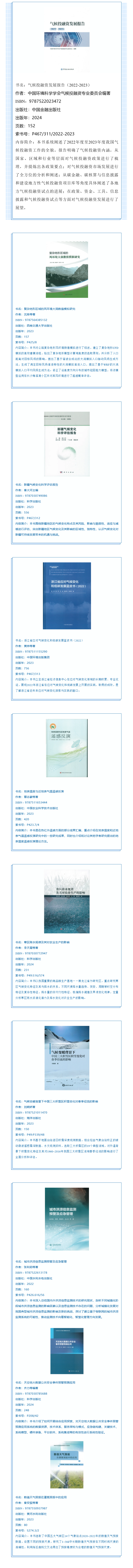 收藏国内外气象专业的各种出版物是中国气象局图书馆的重要职能与任务。本馆现有藏书近17万册,其中中文图书7万余册。中国气象局图书馆公众号将定期向读者推送我馆最新上架的中文图书信息,欢迎有兴趣的读者到馆阅读。