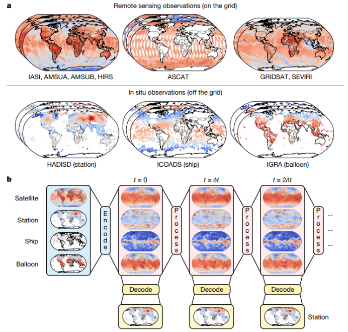 近日,一项研究推出全球首个端到端数据驱动天气预报系统Aardvark Weather,颠覆了传统数值天气预报(NWP)依赖复杂模型链的模式。该系统仅需输入卫星、地面站等原始观测数据,即可生成全球1.5°网格预报和本地站点预报,无需任何传统NWP产品支持。